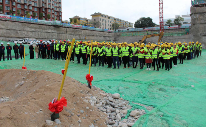 活動現(xiàn)場彩旗飄揚,人潮涌動,施工隊伍整齊列隊,迎賓通道流光溢彩,主持人登場介紹現(xiàn)場的領(lǐng)導(dǎo)與嘉賓,天源一號項目開工奠基儀式由此正式拉開帷幕。